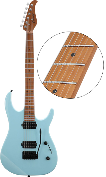 Bolt-on Construction Poplar Body Roasted Maple Neck & Fretboard Die-cast Tuning Machines 648mm/25.5", 22 Frets Rounded Fret Ends Invisible Fret Tangs GraphTech Nut 1V, 1T, 3-Way Selector H-H Pickups Vintage Tremolo Chrome Machine Head Black Tremolo & Knob