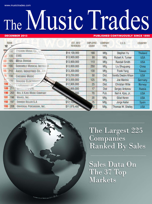 In the December Issue of 2013 Music Trade Show Magazine, Sunsmile ranked 184th in The Global 225 Report. The Global 225 Report, sales rankings of the World's Largest Top 225 manufacturers, is an effort to help distributors and retailers better understand the dynamics of the international industry.