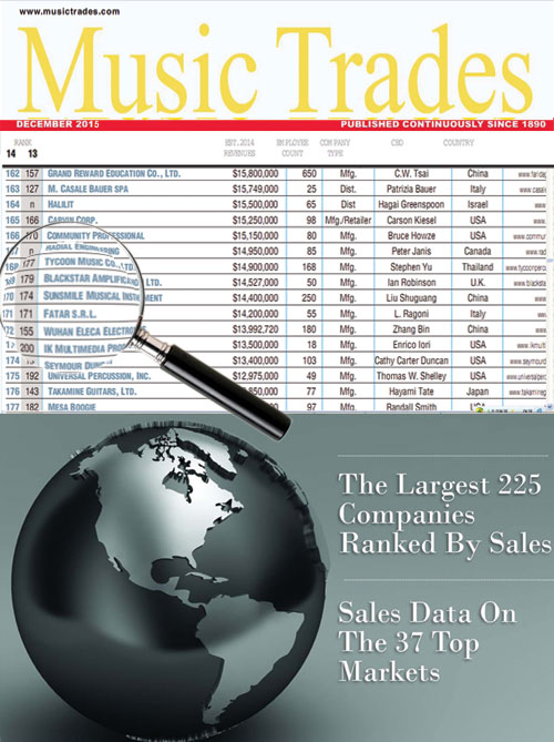 In the December Issue of 2015 Music Trade Show Magazine, Sunsmile ranked 170th in The Global 225 Report. The Global 225 Report, sales rankings of the World's Largest Top 225 manufacturers, is an effort to help distributors and retailers better understand the dynamics of the international industry.